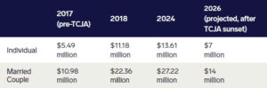 The TCJA roughly doubled the lifetime estate and gift tax exemption. If this provision sunsets in 2025, the 2026 exemption will return to 2017 levels, adjusted for inflation. This would significantly reduce the amount taxpayers can utilize for their wealth transfer planning.